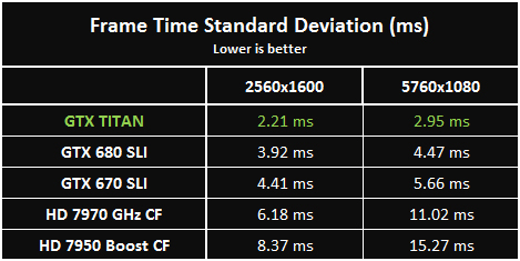 Говорится, что несмотря на многочисленные улучшения и оптимизации драйверов, Multi-GPU решения всё ещё работают не везде одинаково хорошо (что мы видели в тестах выше). У GTX Titan с этим проблем нет, ровно как ещё с одной важной вещью - с плавностью изображения.