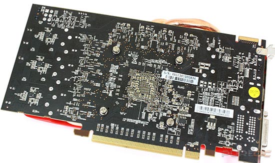 Печатная плата у видеокарты Diamond Radeon HD 7870 GHz Edition черного цвета, сочетание красного кулера и чёрного текстолита напоминают оформление продуктов серии ROG от ASUS. Видеокарта довольно короткая - 200.95мм, а потому она наверняка влезет в любой корпус.