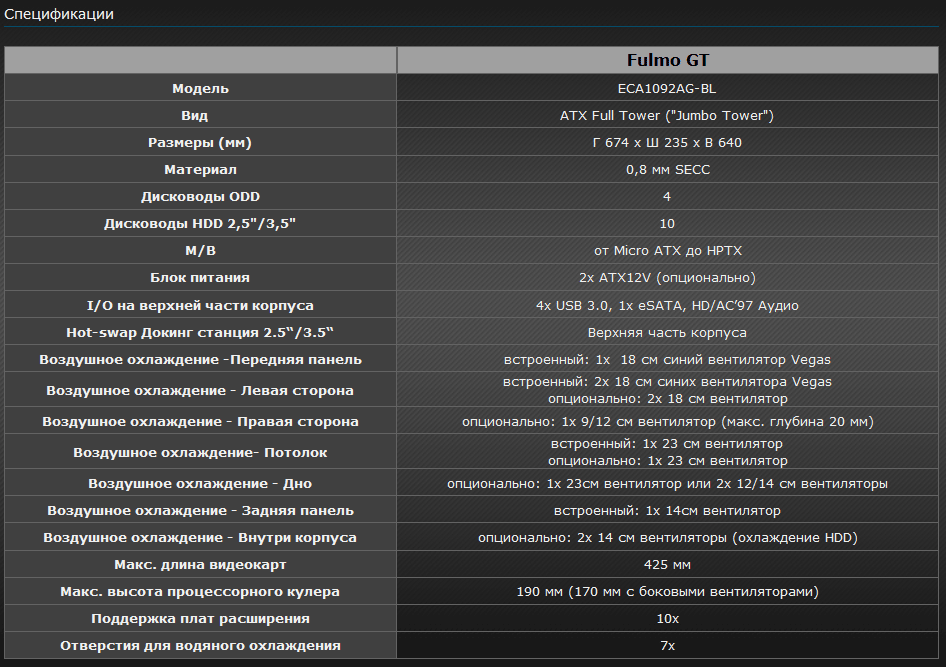 Спецификации корпуса я взял с русского сайта Enermax: