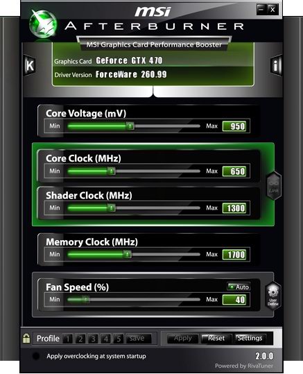 Разгон и частичный мониторинг осуществлялся с помощью MSI Afterburner 2.0.0