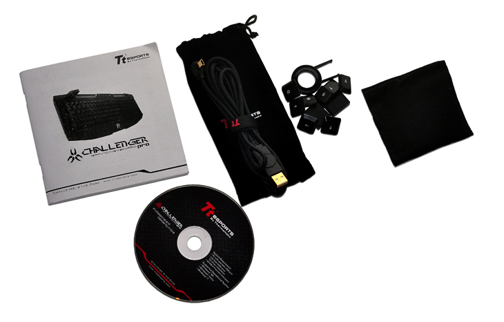 Thermaltake Challenger Pro поставляется в огромной картонной коробке черного цвета, в которой довольно надежно расположилась как клавиатура, так и аксессуары.