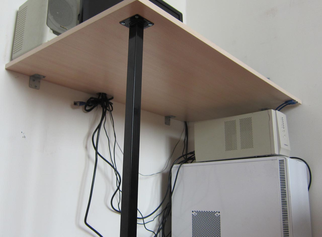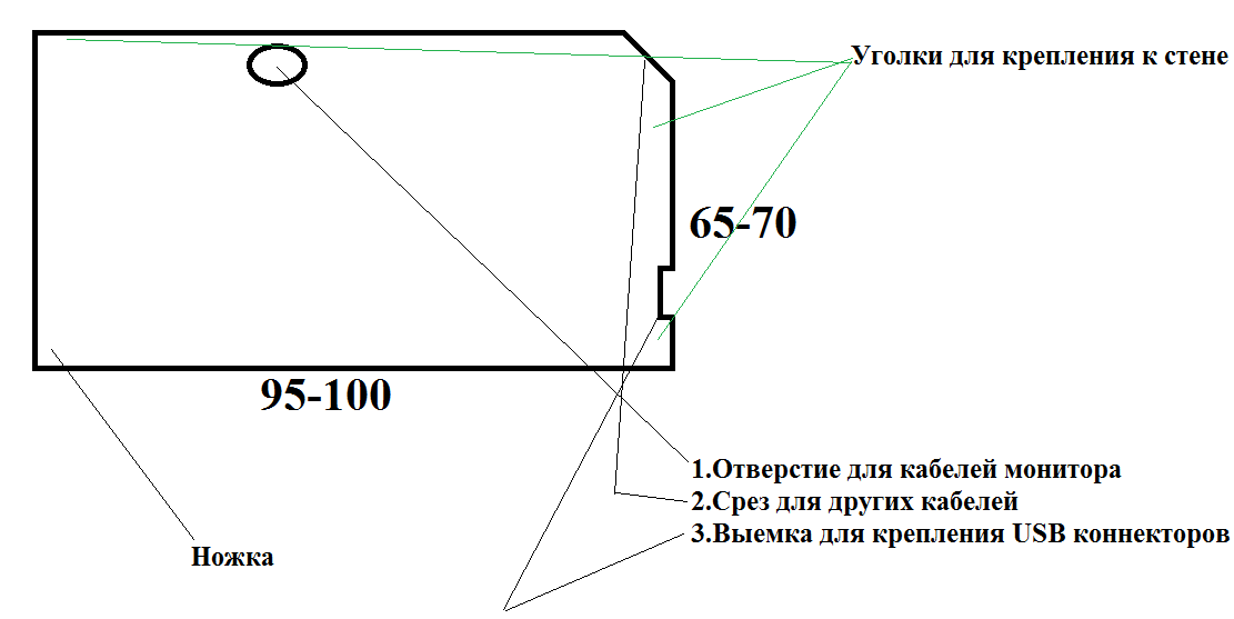 Он является почти точной копией моего, разве что нет выреза для кабелей USB, так как их было решено просто приклеить к нижней стороне стола с выводом коннекторов по правую руку:
