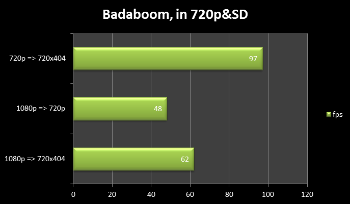 Скорость кодирования напрямую зависит от качества, это очевидно. Стоит отметить, что легкое разрешение (назовем его традиционно – SD) не проблема для Badaboom – скорость кодирования в 5,5 раз превысила исходный (24 fps) фреймрейт видео. Да и даже тяжелый 1080p видеоролик программа преобразует в реальном времени. Стоит отметить, что качество итогового видео очень близко к исходному видеоматериалу, т.е. кодирует Badaboom весьма и весьма качественно.