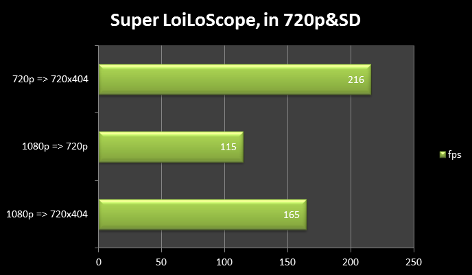 Для начала рассмотрим насколько быстро и качественно кодируется видео «в себя же», т.е. в то же разрешение и примерно тот же размер. Скорость будем измерять в fps, а не в затраченном времени – так удобнее и сравнивать, и подсчитывать сколько будет сжиматься видео произвольной продолжительности. Т.к. сегодня мы рассматриваем технологию «зеленых», то и графики будут соответствующие -)