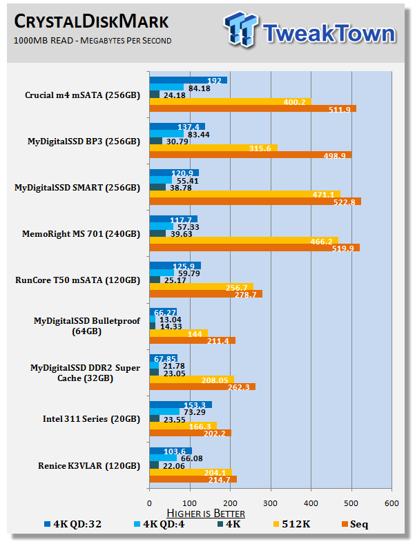 SSD mSATA Crucial m4 показал результат в 0.07мс, что ставит его на одну ступень с лучшими mSATA накопителями, что были протестированы TweakTown до настоящего момента.