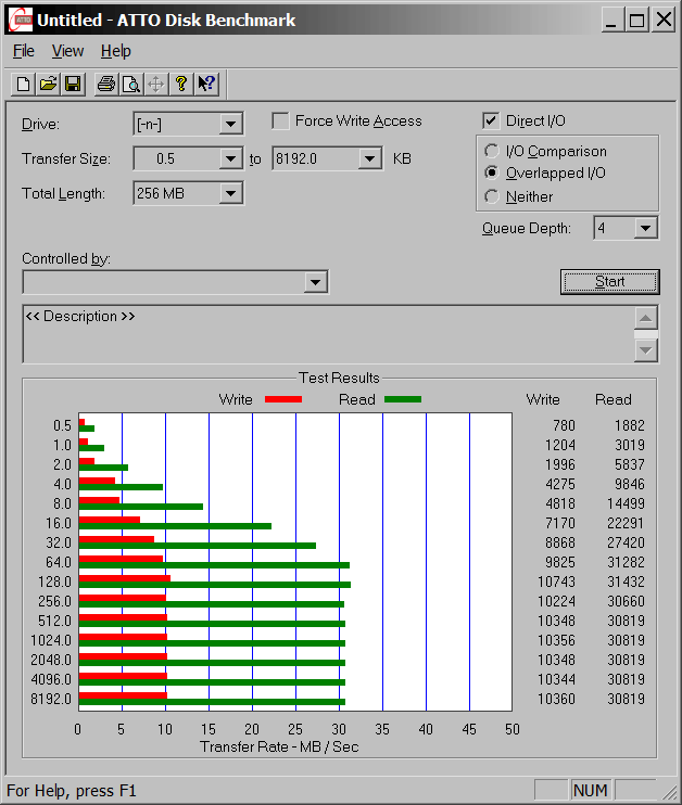 Следующий тест - ATTO Disk Benchmark 2.47. Я запускал его с параметрами по-умолчанию, без каких-либо доп.настроек. Прошу посмотреть результаты тестирования, уважаемые читатели: