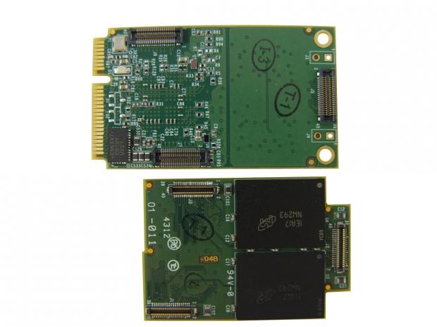 Суммарно, на обеих платах восемь чипов MLC памяти L74A производства Micron (25нм). Используемый контроллер - SandForce-2281 от LSI.