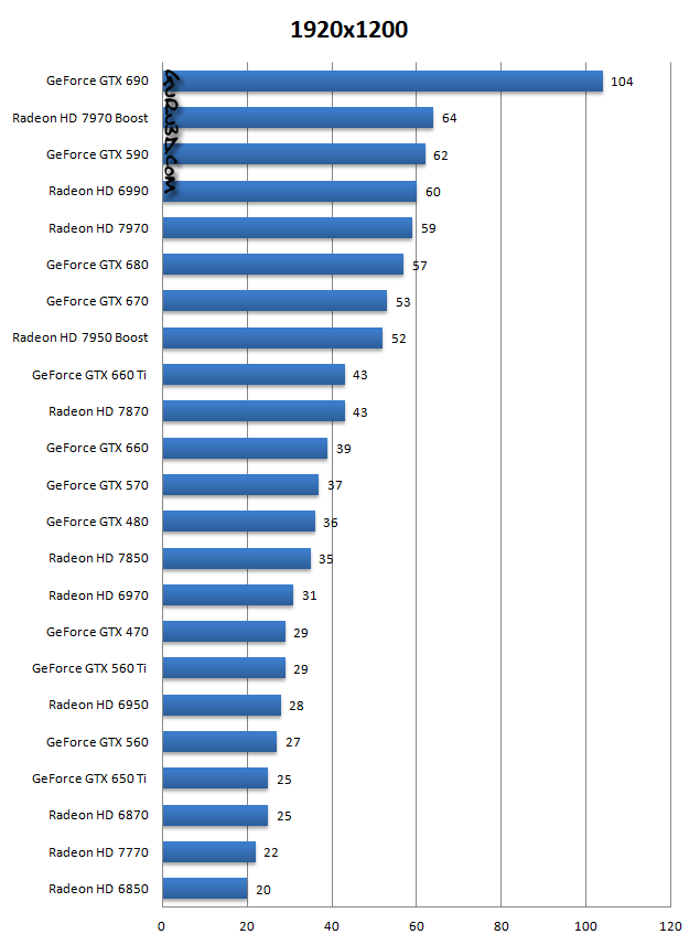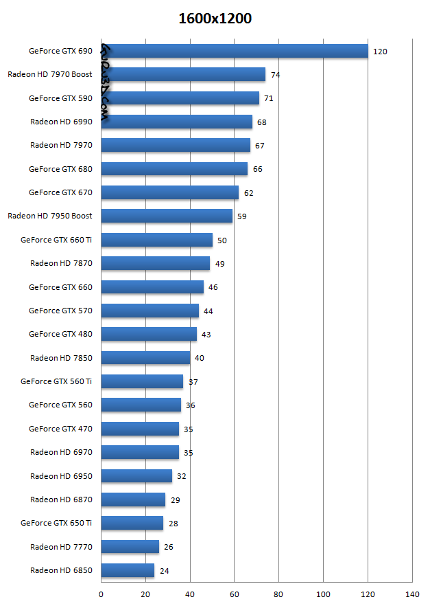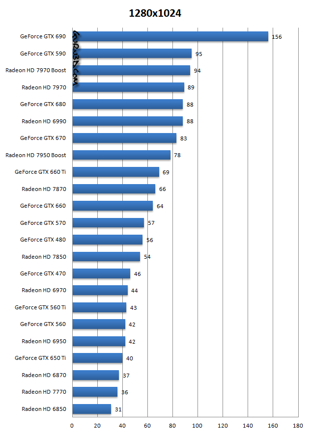 Даже в столь невысоком разрешении, как 1280x1024, новинка серии MoH показывает свои острые зубы. 60 FPS мы видим далеко не у всех видеокарт. GTX 690 лидирует с большим отрывом. Что же будет дальше?