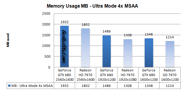 Цифры говорят сами за себя, 2ГБ памяти у видеокарты данной игре хватает, хотя в случае с разрешением 2560х1600 - впритык.