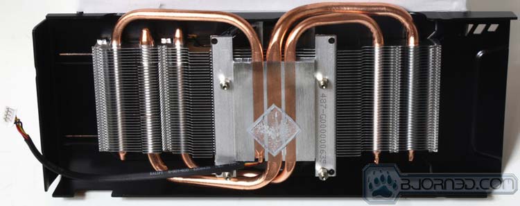 На фото выше показано, что графическое ядро видеокарты напрямую соприкасается со всеми тремя теплотрубками радиатора.