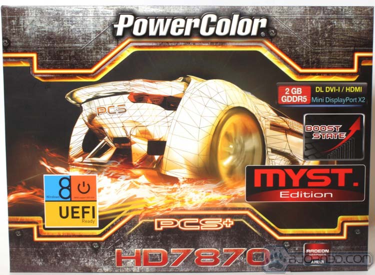 Давайте посмотрим на упаковку видеокарты PowerColor Radeon HD 7870 MYST Edition, уважаемые читатели: