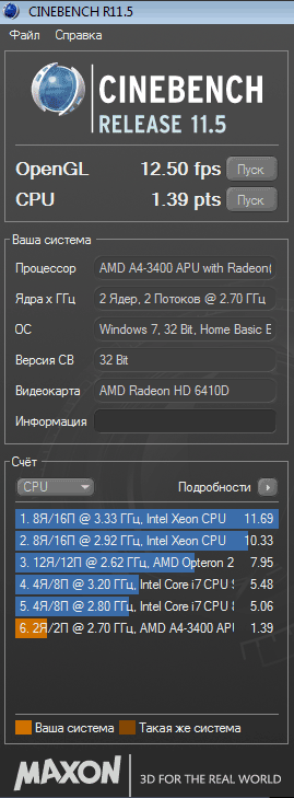 Вот теперь приступим к синтетике. В результатах Cinebench я не разбираюсь, но может вам они что-то скажут.