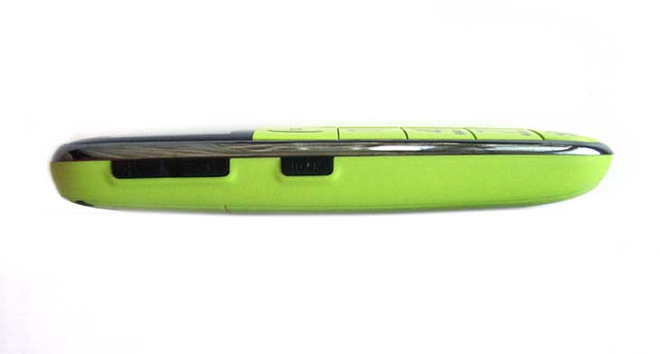 С левой стороны корпуса мобильника расположены клавиша регулировки громкости и кнопка включения радио.