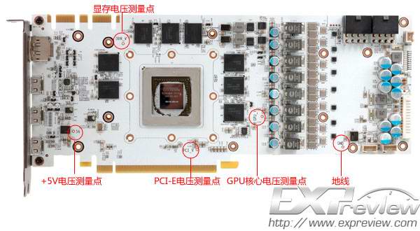 На фото выше показано расположение точек замера напряжений, что поможет оверклокерам в их трудовых буднях.