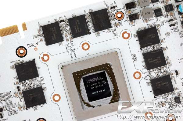 Графическое ядро GK104 в окружении восьми чипов GDDR5 памяти.