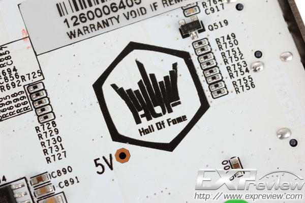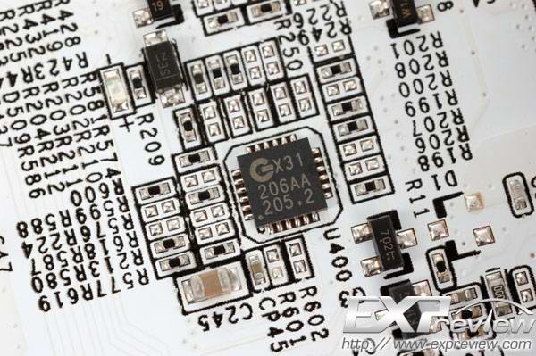 Чип на фото выше - G-Engine, в нём 100000 транзисторов, он произведён по нормам 0.35нм тех.процесса. В нём содержится двойной BIOS видеокарты GeForce GTX 680 Hall of Fame и функционал по мониторингу энергопотреблением и напряжением.