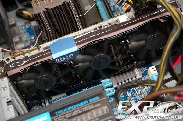 Кушает электроэнергию карточка Galaxy через два 8-и пиновых коннектора питания, а не через связку 6+6, как референсная GTX 680. Усиленная подсистема питания должна помочь в разгоне.