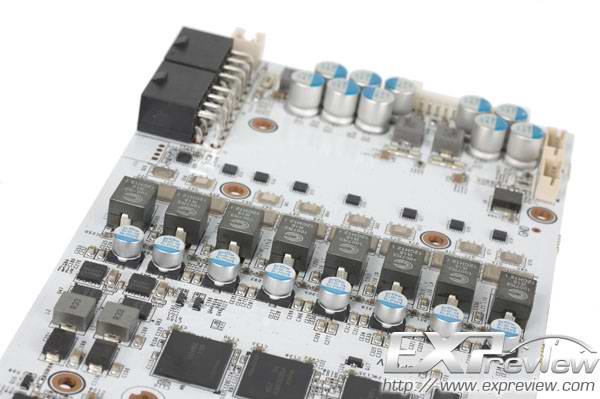 Система питания карты 10 (8+2) фазовая. Используются мосфеты от PowerFET, да твердотельные конденсаторы от Wanyu, а также всем известные NEC Proadlizer. Вдаваться в подробности не буду, ибо всё это больше интересно любителям радиотехники, чем геймерам