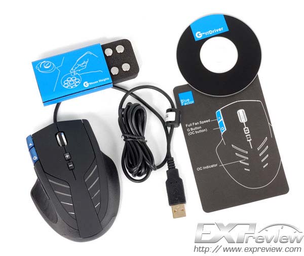 Система охлаждения изделия также показала себя очень неплохо, демонстрируя неплохую эффективность при малом уровне шума. Комплект поставки видеокарты довольно не хилый, в него входит, помимо переходников, ещё и недурственная мышь, вот её фото: