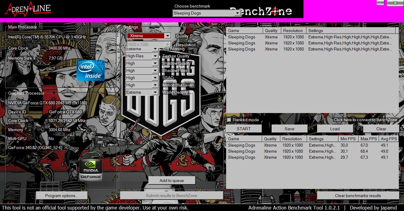 В данном бенчмарке минимальный FPS оказался выше у GTX 780, хотя максимальный и средний за небольшим преимуществом у GTX 980, а GTX 680 весьма сильно отстаёт от более новых графических адаптеров по этим параметрам.