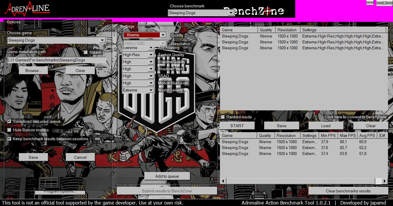 | Минимальный и средний FPS, результат трёх прогонов игры/бенчмарка | ||||