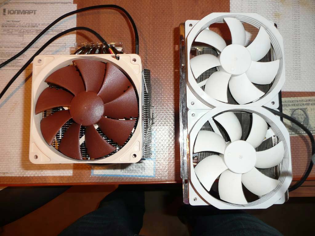 - на Cooler Master GeminII были установлены 2 вентилятора Thermaltake Silent Cat 120 мм, 1600 об/мин.