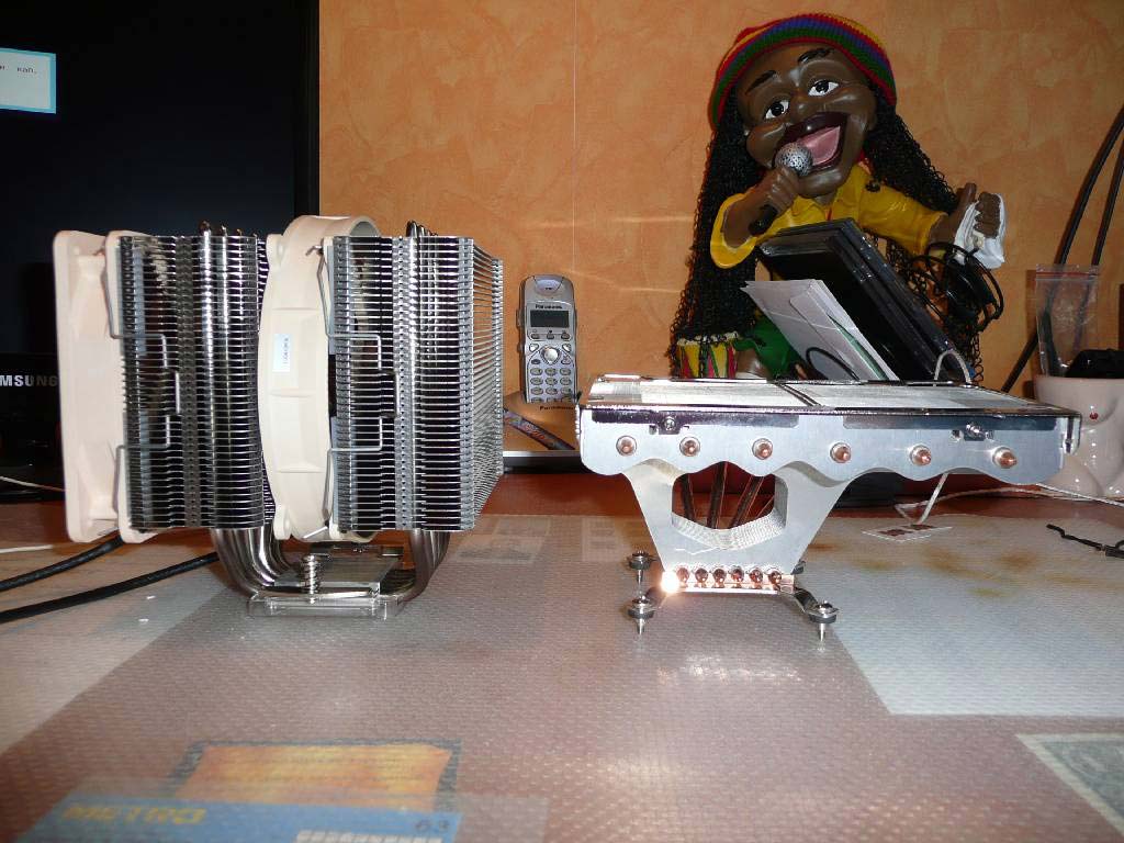 - основание далеко от идеала, чуть-чуть кривое (выпуклое) и шероховатое. Именно из-за этого как мне кажется максимальная разница температур между самым холодным и самым горячим ядром доходит до 4°C. на Cooler Master GeminII основание обработано лучше и не имеет видимой кривизны, разница температур между ядрами не превышала 2°C.