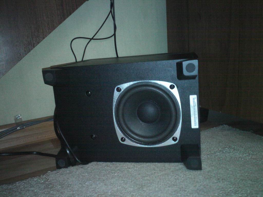 К ножкам сабвуфера приклеены резинки, которые снижают вибрации и исключают скольжение по полу или столу.