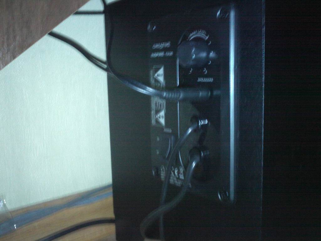 На задней панели имеется регулятор уровня басов и кнопка отключения питания.