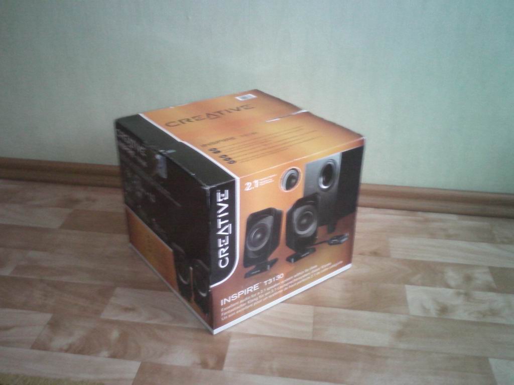 Акустика поставляется в почти квадратной коробке, где отмечены все ключевые особенности Inspire T3130.