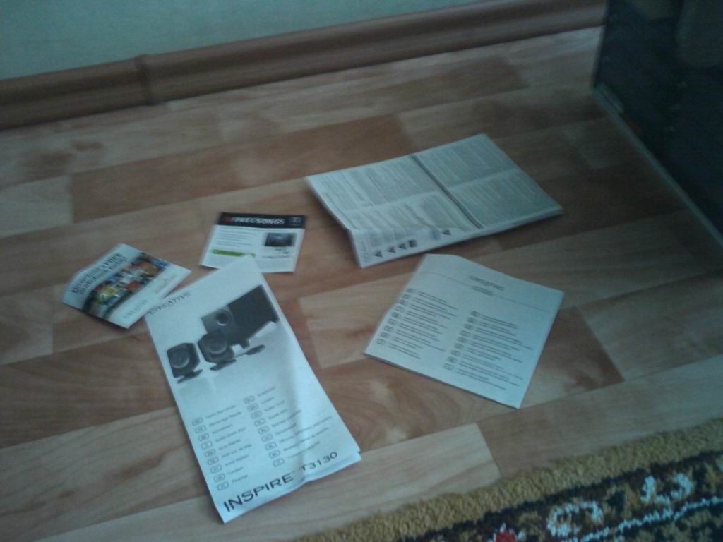 Помимо акустики в коробке можно найти краткое руководство пользователя, инструкцию по подключению, гарантийный талон и несколько рекламных буклетов.