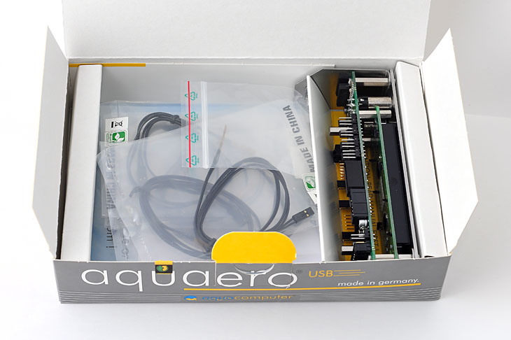 Абсолютно все находится в запаянных пакетиках, а сам Aquaero лежит между подушками из плотного картона. Воистину Made in Germany.