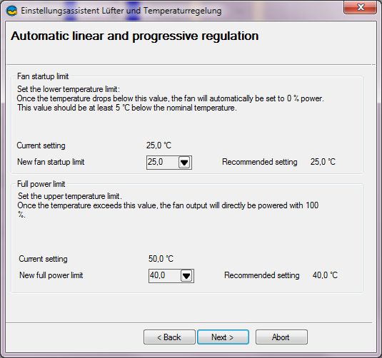 Max limit in °C - применяется для линейной регулировки и регулировки по прогрессии. Максимальная температура, при которой вентилятор должен раскрутиться до 100% оборотов.
