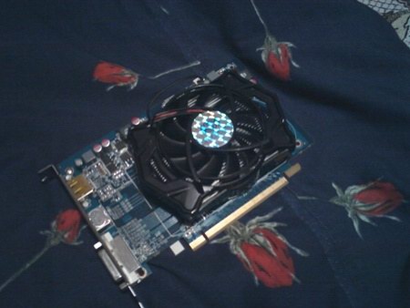На карту установлен «обычный» радиатор без тепловых трубок, но и карта не самая горячая. Вентилятор довольно шумный в режиме автоматической регулировки, при выставлении минимальных оборотов карту почти не слышно, но температура под нагрузкой достигает 86 градусов, что не критично.