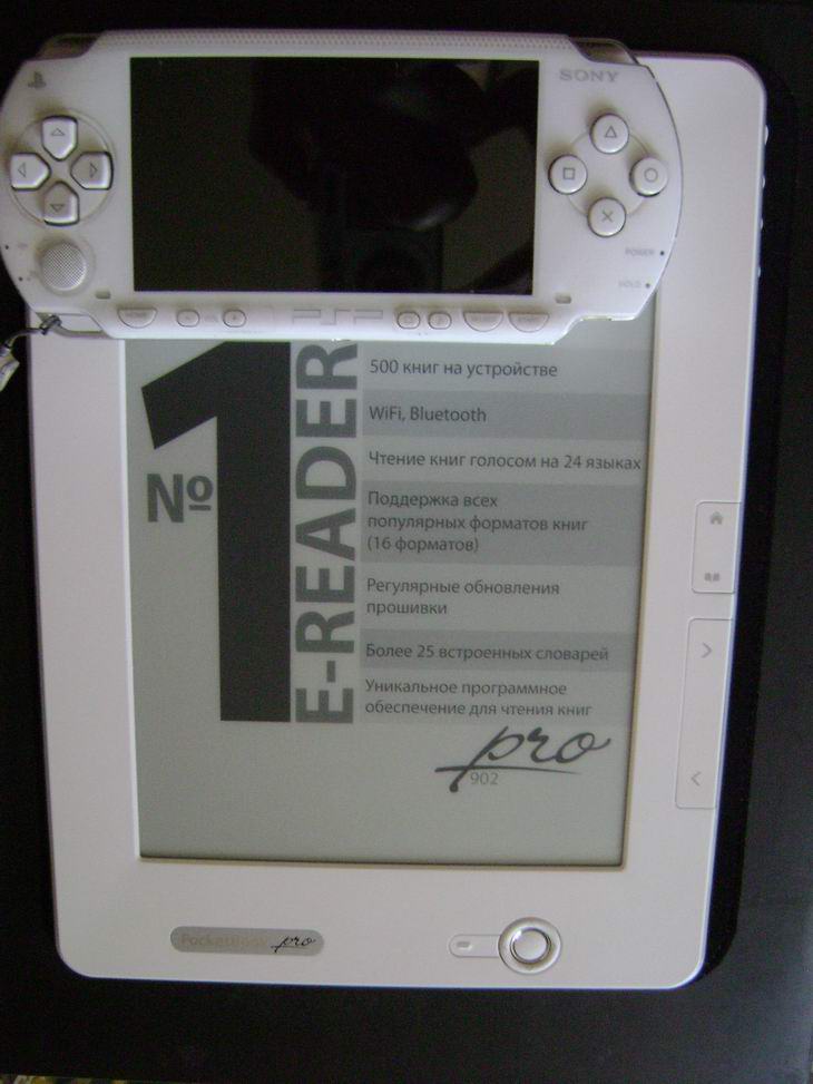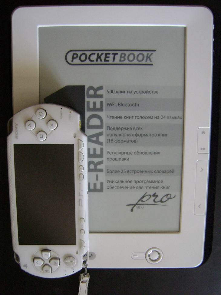 Да, это пользовательское меню. Но прежде чем приступить к программной части обзора, я хотел бы рассказать о габаритах устройства и сравнить его чисто визуально с тем, что я использую в качестве читалки электронных книг каждый день - Sony PSP (FAT-версия, т.е. не Slim и уж точно не PSP Go
