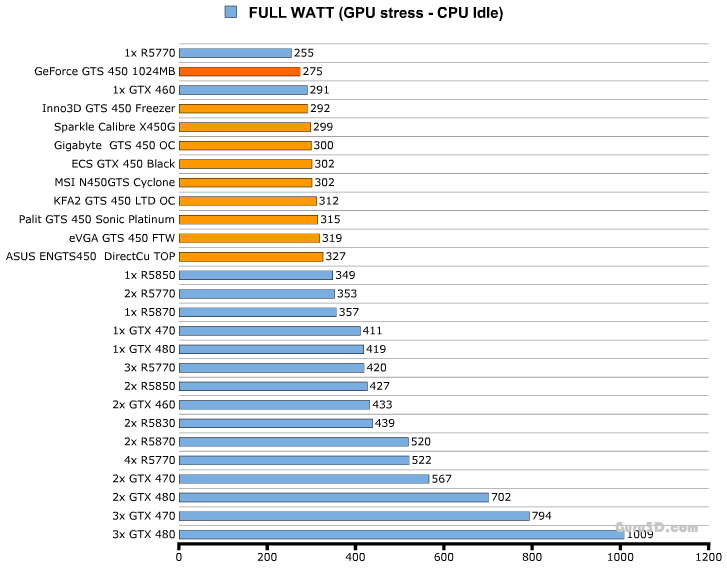 В табличке выше показано энергопотребление системы целиком. Процессор находился в режиме бездействия, а видяшки были нагружены по самое не хочу.
