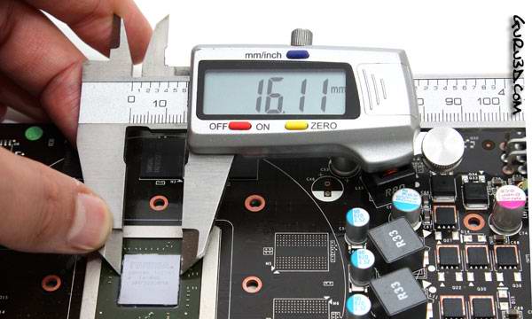 Гилберт не поленился и снял крышку теплообменника с графического чипа карты и измерил сам GF106: