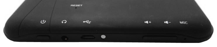 Весьма полезная в редких случаях кнопка сброса (Reset), нажимать на неё нужно в случае, когда планшет зависает намертво и не реагирует на кнопку выключения или прикосновения к экрану.