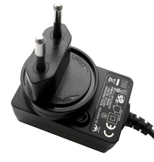 Ни разу не видел подобной конструкции прежде и даже слегка впечатлился. Отсоединение вилки от адаптера питания осуществляется нажатием на кнопку, видную на фото и поворотом вилки в указанном на ней стрелкой направлении.