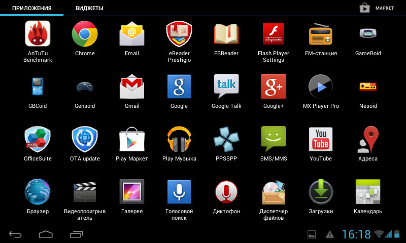 Привожу несколько скриншотов ОС Android 4.1.2, под управлением которой функционирует планшетник:
