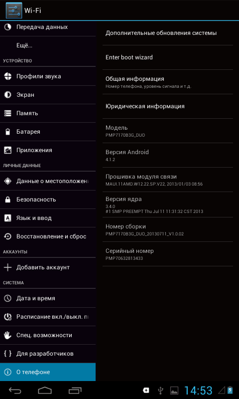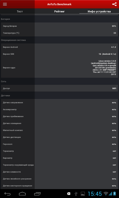 Теперь я предлагаю посмотреть на данные о планшете, полученные в самой ОС Android: