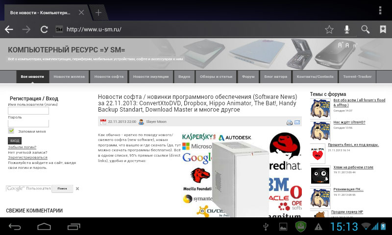 Также, я решил зайти с помощью встроенного браузера на один хорошо знакомый мне по каким-то причинам (
