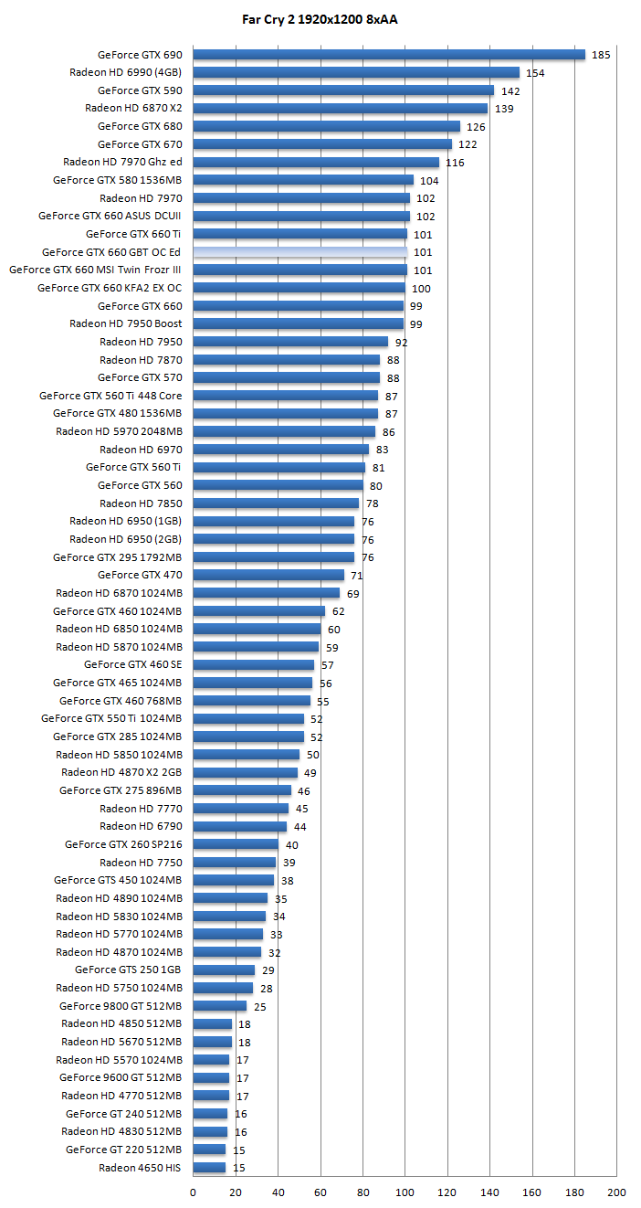 Забавно - изделие Gigabyte кушает электроэнергии меньше, чем GTX 660 SC от EVGA. Для такой видеокарты Гуру3Д рекомендуют обзавестись блоком питания мощностью не менее 450-500 ватт для одной карточки и 700 ватт - для двух в SLI.