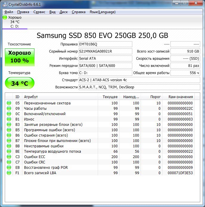 - Накопитель - Samsung 850 EVO (версия микропрограммы EMT01B6Q)