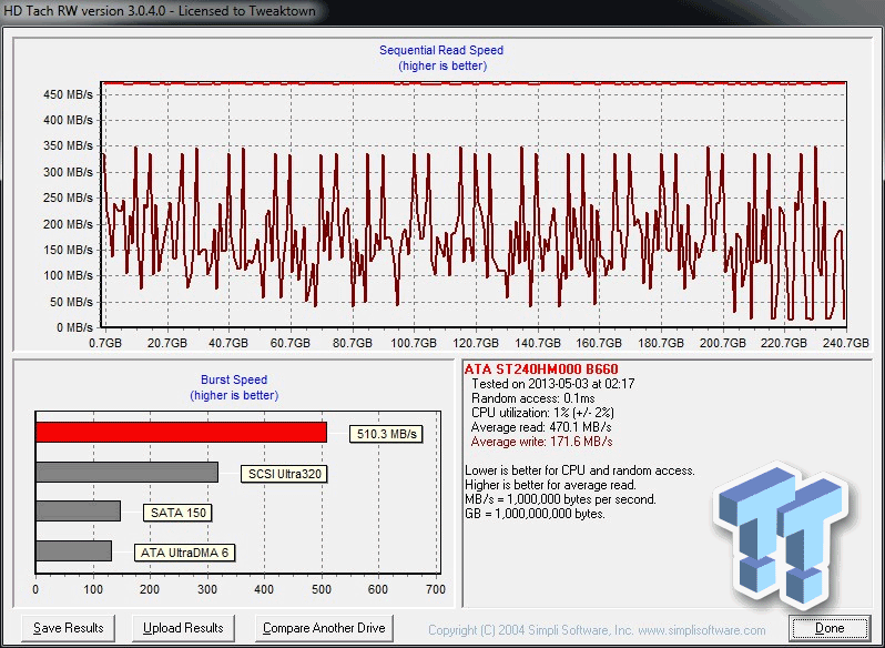 Наше внимание обращают на участие в тестах варианта SSD Corsair Neutron GTX с 19нм памятью, изделие чрезвычайно близко к Seagate 600 по компонентам, поэтому будет интересно сравнить два этих девайса. Средний результат в 448МБ/с называется очень хорошим.