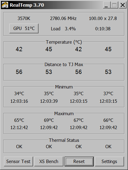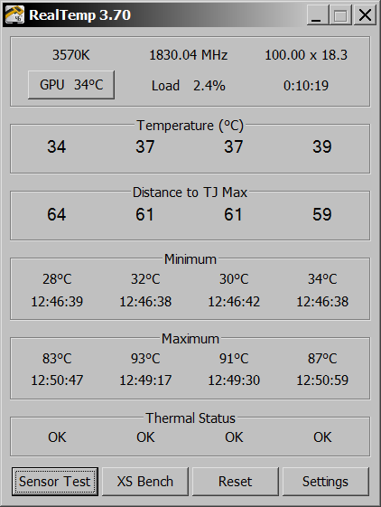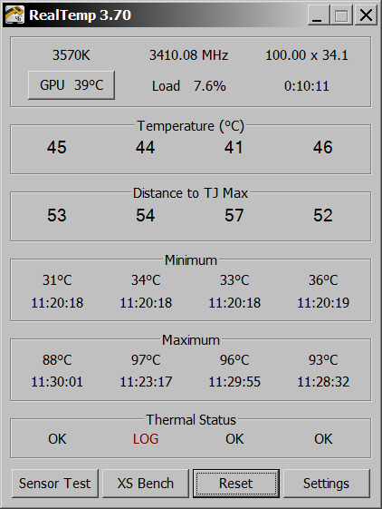 Тесты проводились только на разогнанном процессоре, но в двух режимах - с закрытой боковой стенкой и открытой. В LinX выставлялся 10-минутный тест с задействованием доступной 12288МБ (из общих 16ГБ) оперативной памяти и объёмом задачи 40082, в Prime 95 выставлялся режим Small FFTs, тест был также ~10-минутный, бенчмарк по FF XIV запускался при следующих настройках в Loop режиме: