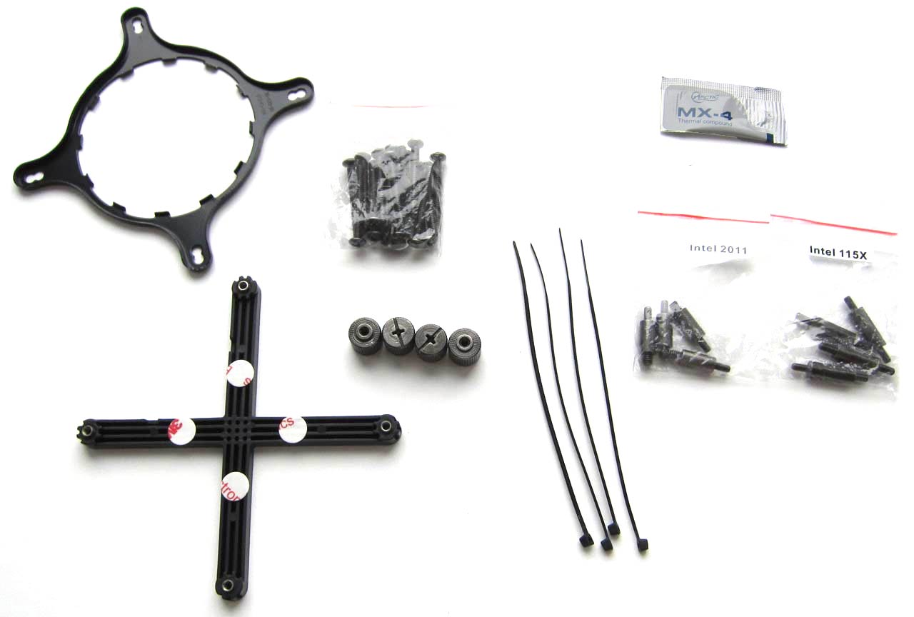 Как видно, изделие совместимо также с процессорами LGA2011, комплектуется четырьмя одноразовыми стяжками и 8-граммовым пакетиком термопасты MX-4.