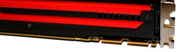 Питание - связка из 8+6 пиновых коннекторов БП, коннекторов CFX - два, а значит соединить в тандем можно до четырёх видеокарт Radeon HD 7970 GHz Edition.