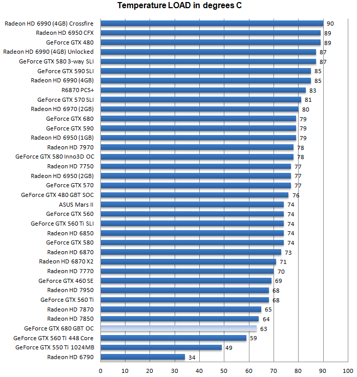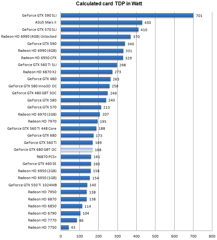 Удивительно, но новинка кушает меньше электроэнергии, чем референсная карточка GTX 680! Для продукта Gigabyte Гуру3Д рекомендуют обзавестись блоком питания мощностью не менее 550 ватт для одной карточки и 750 ватт - для двух в SLI.