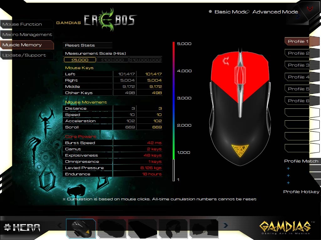 Третья вкладка настроек именуется "мускульной памятью", она демонстрирует статистику по нажатию тех или иных кнопок на мышке: